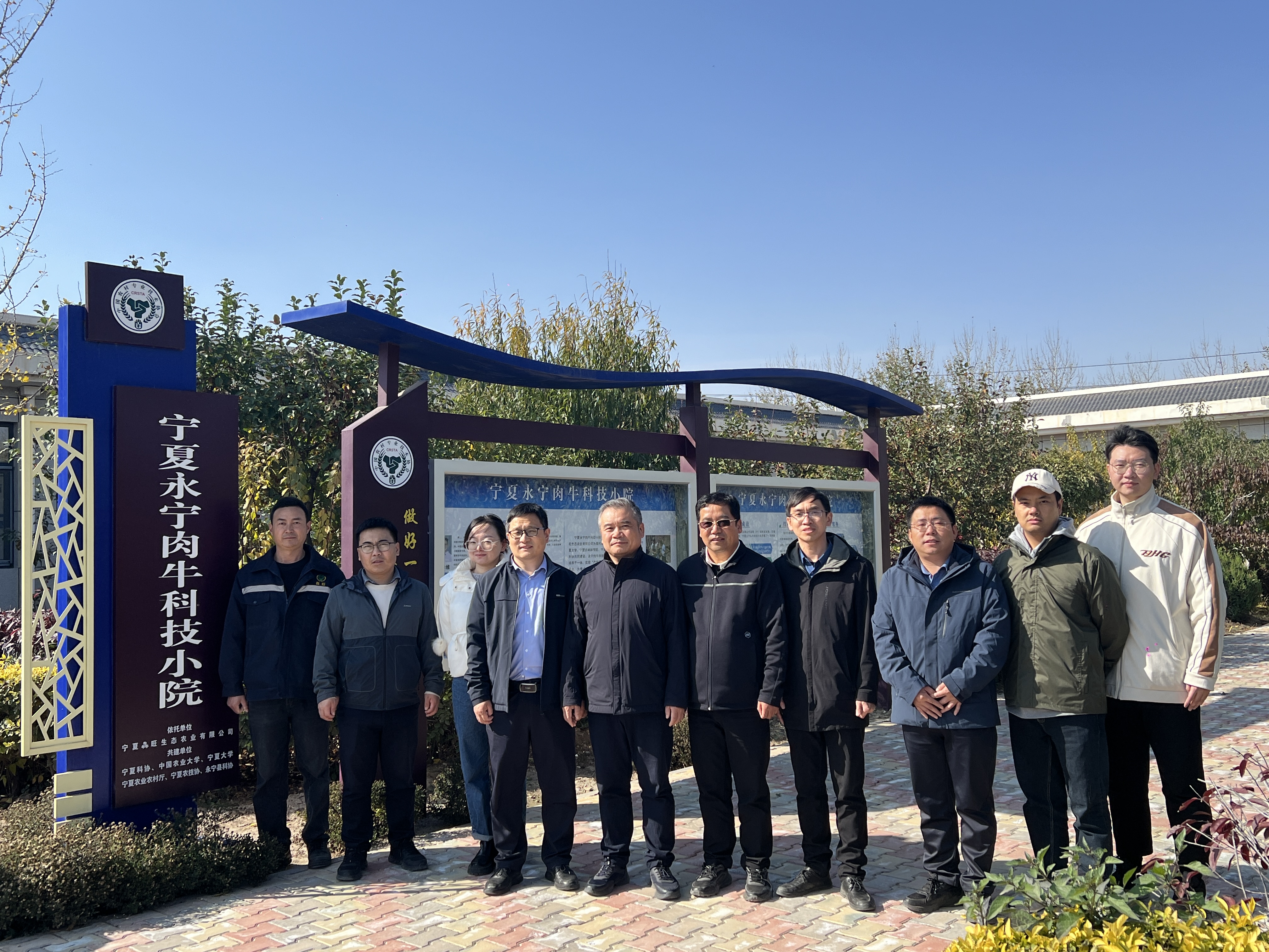 与中国农业大学等共建的“宁夏永宁肉牛科技小院”依托单位。目前团队研究生正在该基地针对和牛开展胚胎移植扩繁试验,马云教授、吕文发教授及中国农业大学苏华维、陈辉翰教授、西北农林科技大学黄永震教授等对基地的试验工作给予了指导,并慰问了驻基地研究生。