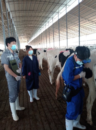 农学院马云教授团队成员冯雪博士六月初就带领多名硕士生驻场进行准备工作,主要对牛舍环境、奶厅环境、奶牛产奶量和健康状况等进行前期整理,筛选供体牛,为后期OPU-MOET及克隆胚胎移植工作的实施奠定基础。本次克隆胚胎移植工作首先通过奶牛体细胞培育克隆胚胎,同时在盛澳源农牧有限公司保留自然发情的青年受体母牛50头左右,根据黄体检测进行受体牛群筛选与移植,预计于2023年6月底产犊并统计产犊率。