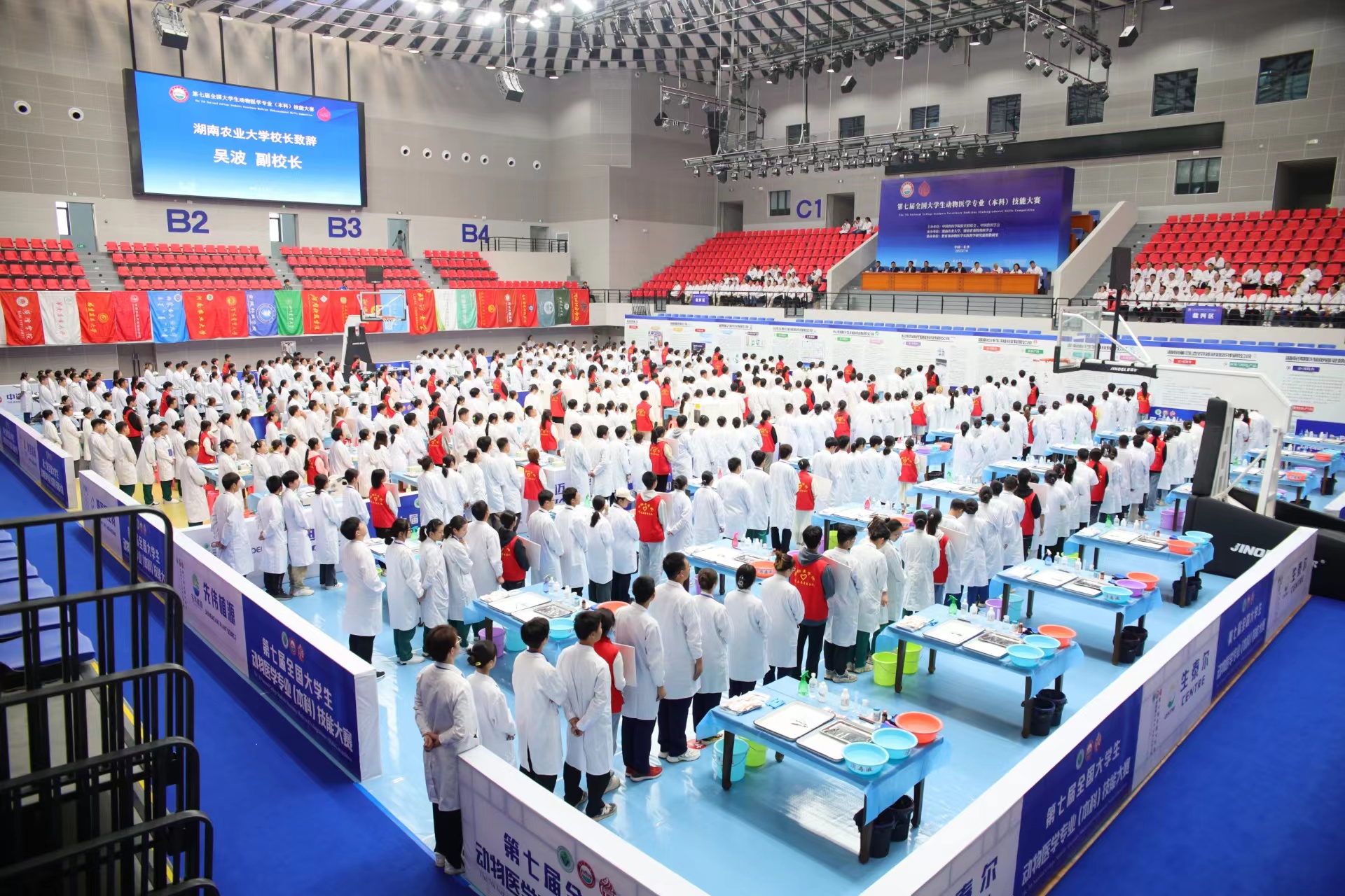 全国大学生动物医学专业技能大赛是全国动物医学专业学生专业知识与技能比拼的最高舞台。10月22日上午,大赛开幕式正式开始。湖南农业大学副校长吴波代学校致欢迎辞。中国工程院院士、中国兽医学院院长联席会主席沈建忠教授在致辞中鼓励广大动医学子努力学习、勤于实践、练好本领,赛出风格、赛出水平,早日成长为肩负时代使命的优秀兽医人才,为行业的健康发展贡献力量。