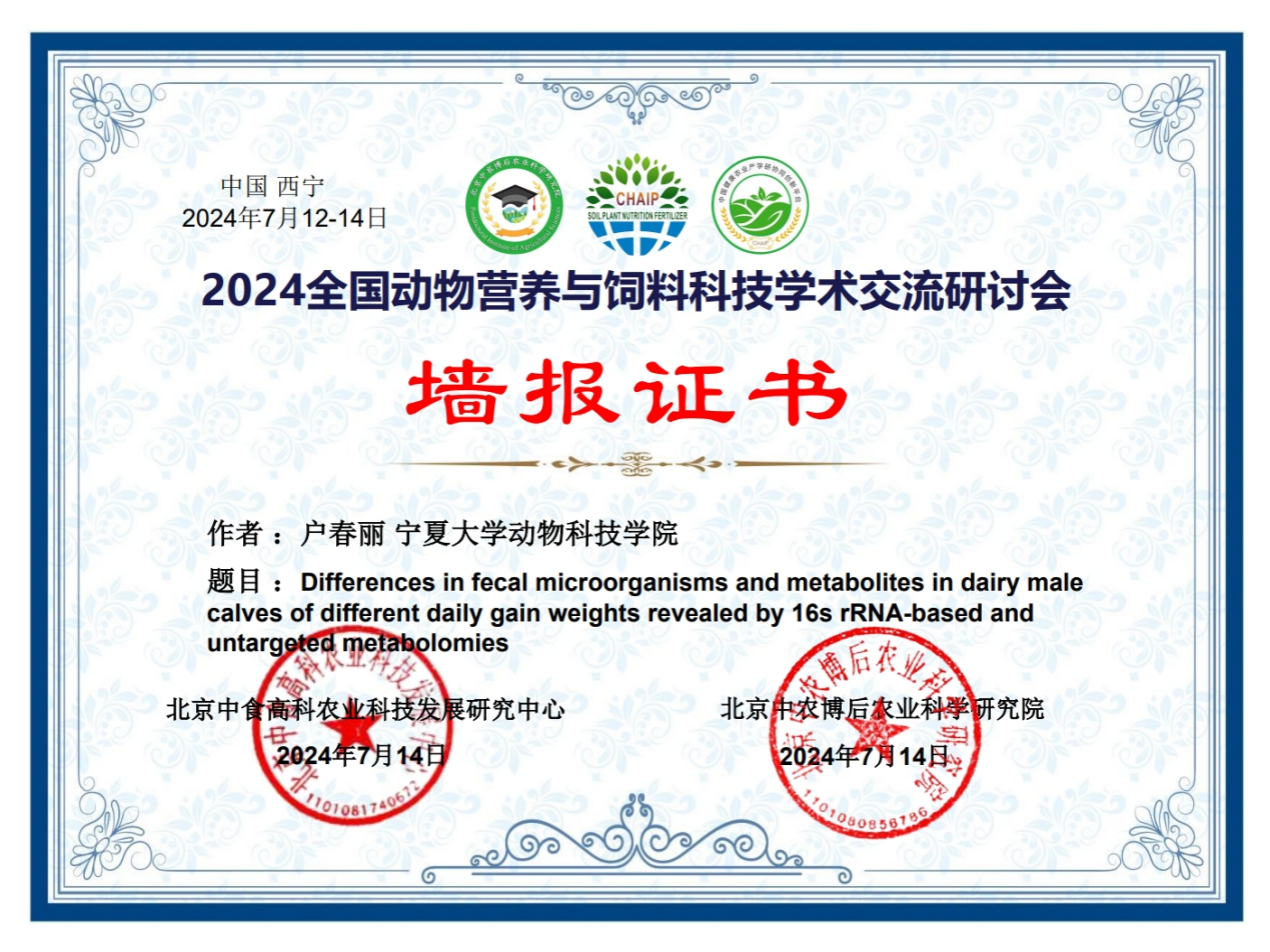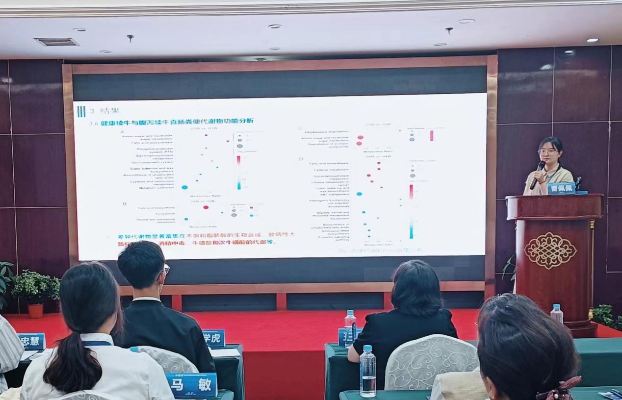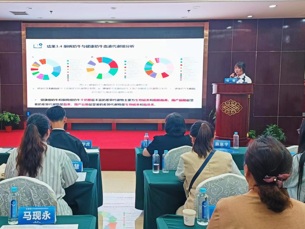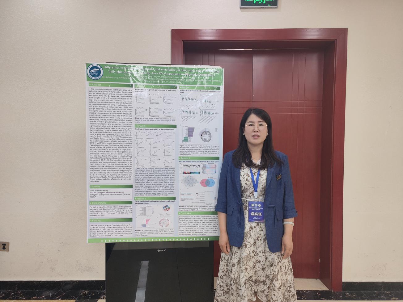 马燕芬研究员指导的博士研究生马学虎以《EGCG缓解氧化损伤奶牛乳腺上皮细胞的研究》为题作口头报告、硕士研究生曹佩佩以《基于16s rDNA和代谢组学揭示调控犊牛腹泻的关键微生物和关键代谢物》为题作口头报告、硕士研究生宋忠慧以《高低日增重奶公犊血浆差异代谢物分析研究》为题作口头报告、硕士研究生马敏以《基于代谢组学探究围产期奶牛血液代谢物及主要代谢通路分析》为题作口头报告、博士研究生户春丽以《Differences in fecal microorganisms and metabolites in dairy male calves of different daily gain weights revealed by 16s rRNA-based and untargeted metabolomies》为题作墙报展示。通过参加本次学术讨论会,不仅加强了团队师生的学习交流能力,又对当前我国动物营养与饲料科学领域热点有了更为深入的了解。为台湾三级片