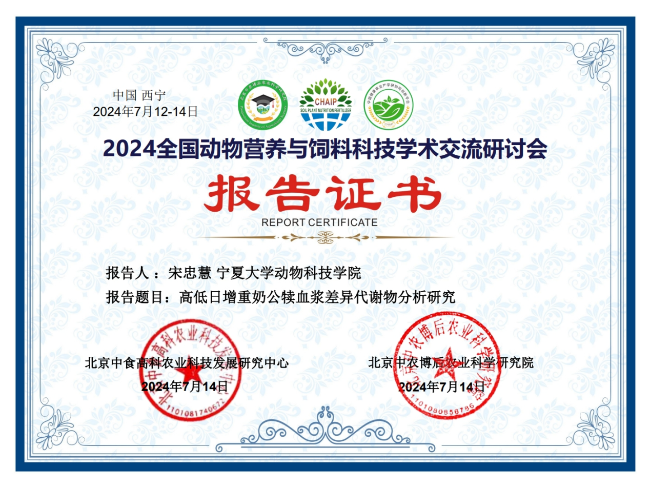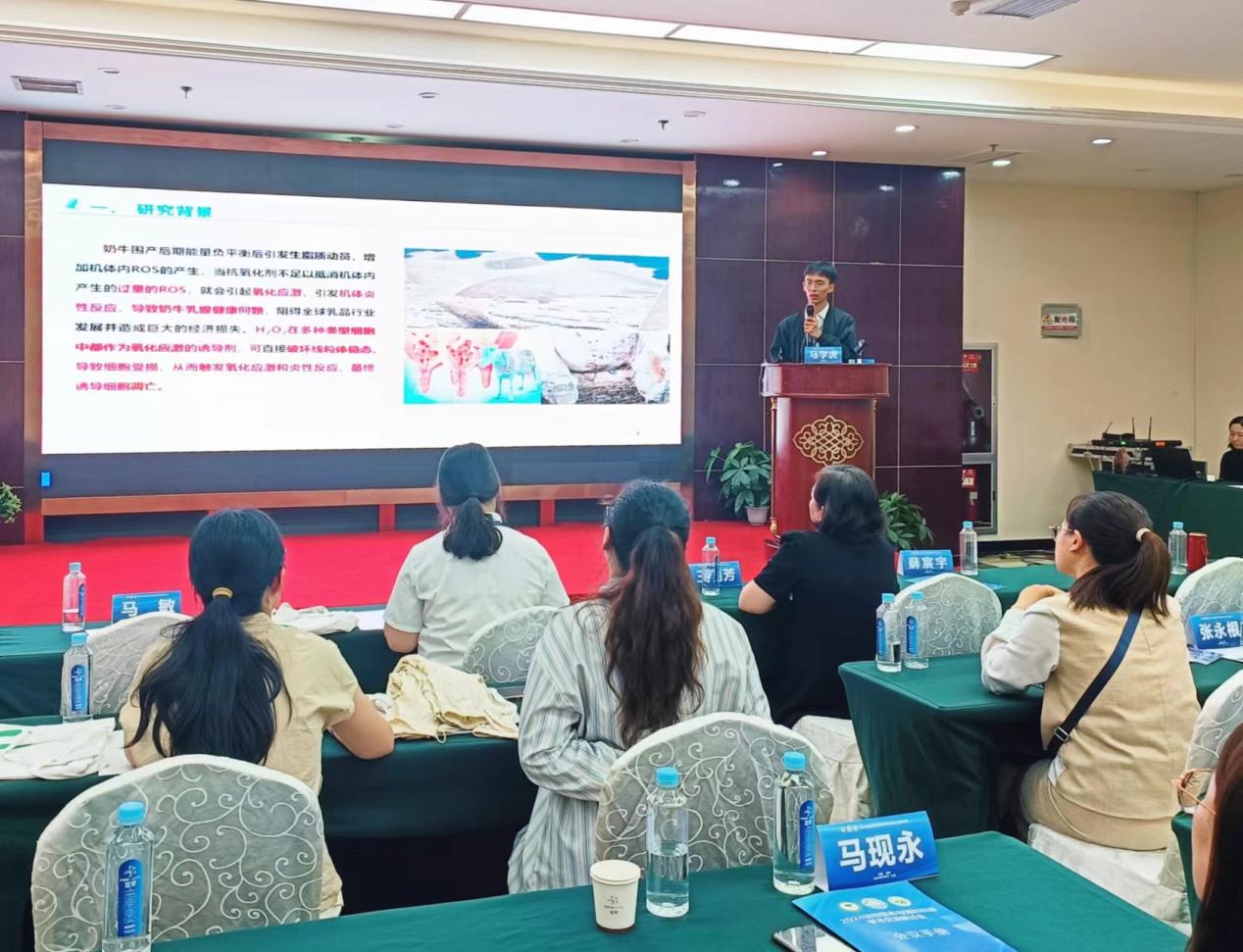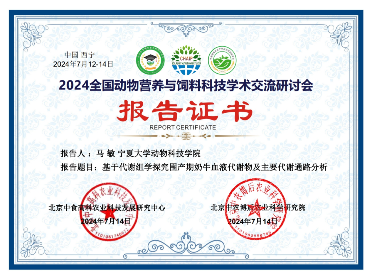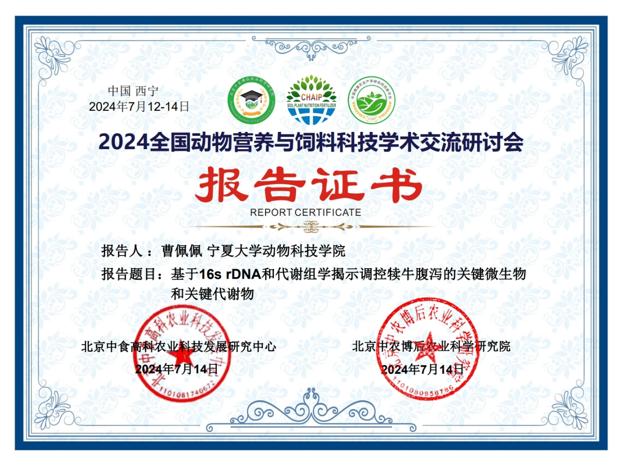马燕芬研究员指导的博士研究生马学虎以《EGCG缓解氧化损伤奶牛乳腺上皮细胞的研究》为题作口头报告、硕士研究生曹佩佩以《基于16s rDNA和代谢组学揭示调控犊牛腹泻的关键微生物和关键代谢物》为题作口头报告、硕士研究生宋忠慧以《高低日增重奶公犊血浆差异代谢物分析研究》为题作口头报告、硕士研究生马敏以《基于代谢组学探究围产期奶牛血液代谢物及主要代谢通路分析》为题作口头报告、博士研究生户春丽以《Differences in fecal microorganisms and metabolites in dairy male calves of different daily gain weights revealed by 16s rRNA-based and untargeted metabolomies》为题作墙报展示。通过参加本次学术讨论会,不仅加强了团队师生的学习交流能力,又对当前我国动物营养与饲料科学领域热点有了更为深入的了解。为台湾三级片