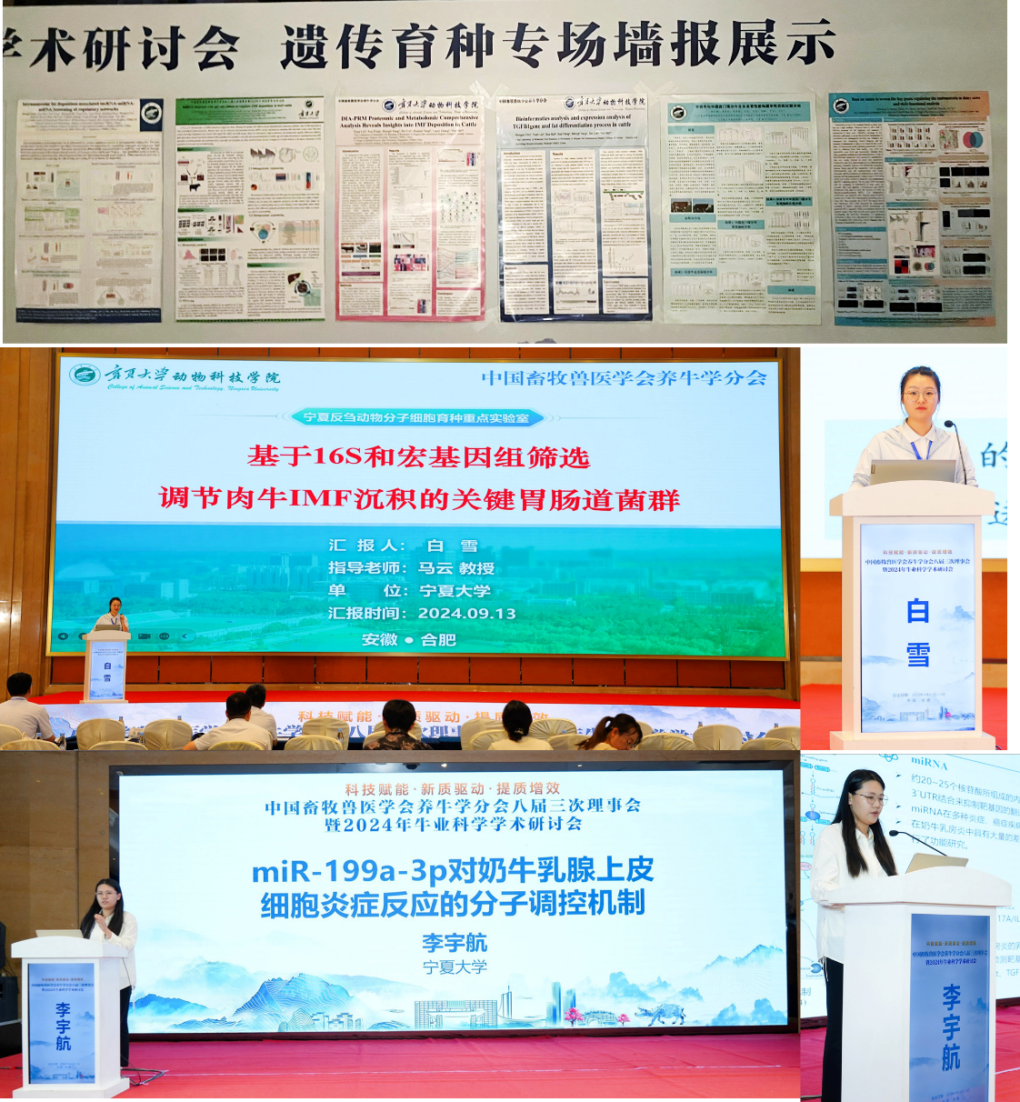 研究生共投递会议论文7篇,墙报6个,2名博士研究生被遴选做分会场汇报,其中,马云教授指导的博士研究生白雪在遗传育种分会场做口头汇报,王兴平教授指导的博士研究生李宇航在生物育种、繁殖与疾病分会场做口头汇报。马云教授指导的研究生杨梦丽、白雪、冀国尚、刘源、楚洪恩、娜日娜等人在动物遗传育种专场做墙报展示。