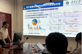 课题负责人自治区畜牧工作站王瑜研究员进行了年度工作总结汇报。介绍了课题组在宁夏农垦乳业股份有限公司各分场的数据收集、血液指标检测和数据整理等工作。截至目前,已在12家牧场收集了3.82亿条各类数据,并初步构建了宁夏地区奶牛生产数据库。王瑜研究员重点介绍了奶牛行为数据库、奶牛泌乳数据库、环境温湿度数据库等研究内容,并提出了下一年度的工作安排。