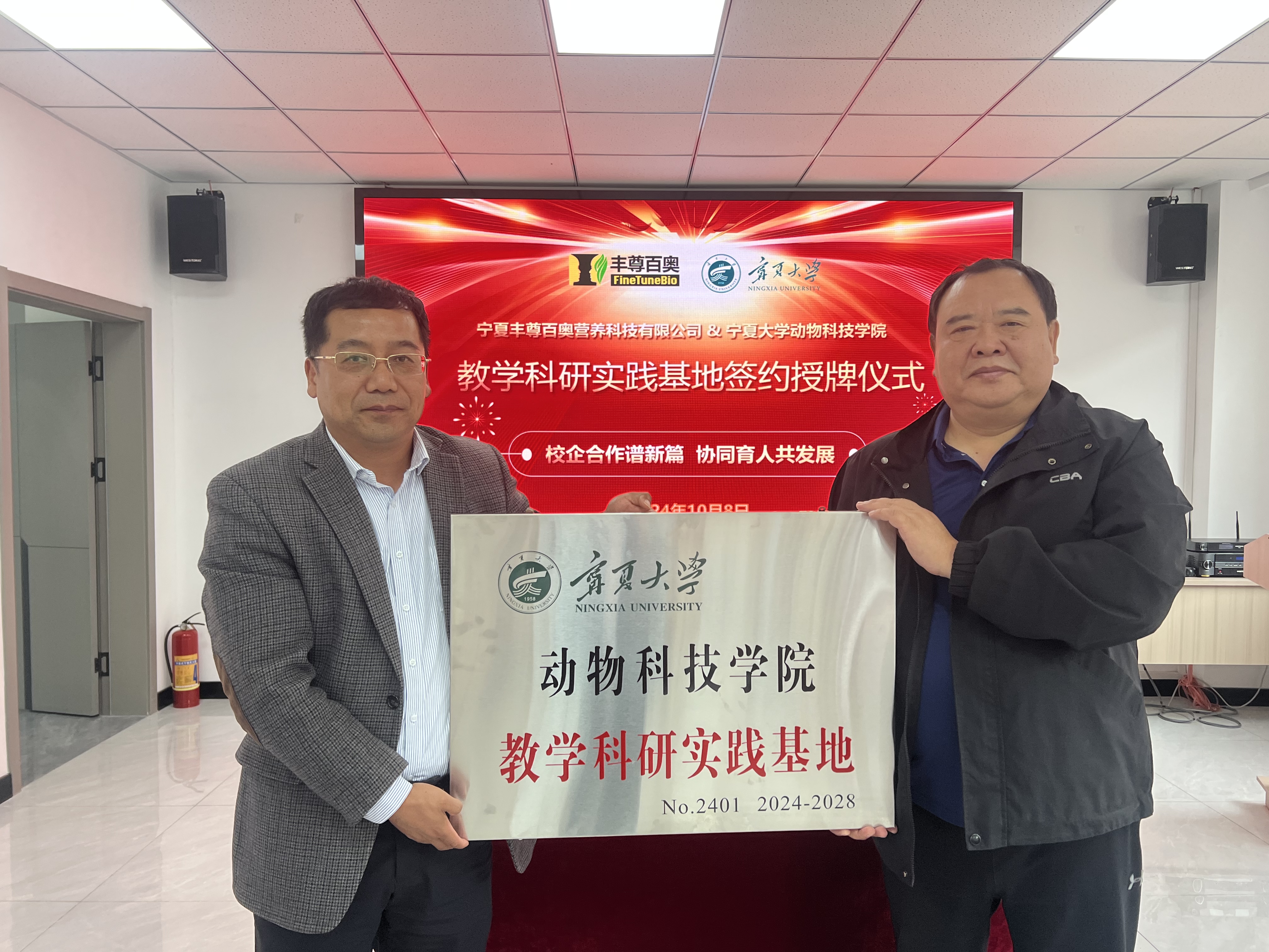 教学科研实践基地”挂牌仪式于宁夏丰尊百奥营养科技有限公司举行。台湾三级片
